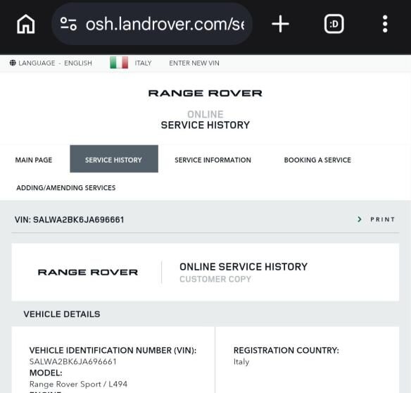 Vettura UNICOPROPRIETARIO – Tagliandi esclusivamente casa madre Land Rover effettuati anticipatamente ogni 12 mesi scrupolosamente.